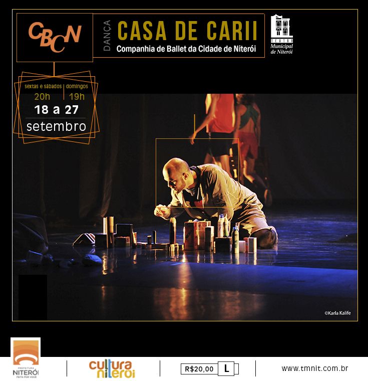 Associando dança contemporânea e ritmos que exploram a brasilidade, a Companhia de Ballet da Cidade de Niterói apresenta o espetáculo “Casa de Carii” entre os dias 18 e 27 de setembro de 2015, sextas e sábados, às 20h, e domingos, às 19h, no Teatro Municipal de Niterói. Os ingressos custam R$ 20 reais.