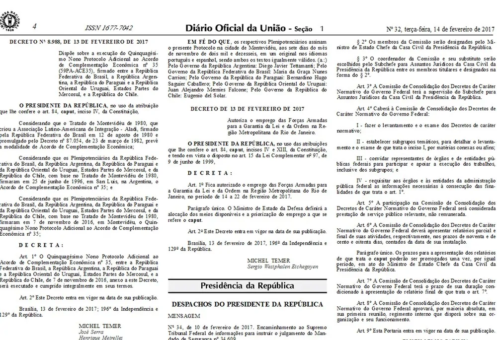 Segundo Pezão, os militares deverão permanecer na região até depois do carnaval. No entanto, de acordo com o decreto publicado no Diário Oficial desta terça, as tropas permanecerão do dia 14 até o dia 22 de fevereiro. Neste período, nove mil militares estarão em ação.