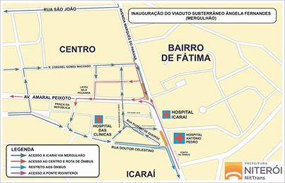 No sentido Icaraí, os motoristas terão como opção o mergulhão, onde as vias serão direcionadas para que esse acesso seja feito através da Rua Coronel Gomes Machado. Assim, os veículos poderão percorrer a Amaral Peixoto ou seguir pela Rua Doutor Celestino até a Rua Marques de Olinda, via que também poderá ser acessada circulando pela Rua Euzébio de Queiroz. A Rua Djalma Dutra, servirá de acesso ao Bairro de Fátima, em mão única, permitindo ainda chegar aos hospitais Antonio Pedro e Icaraí.