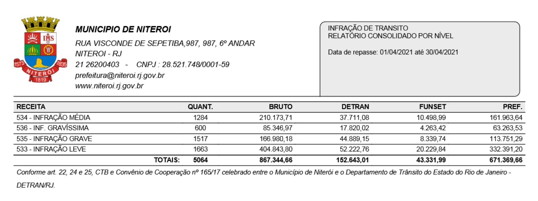 Arrecadação em abril de 2021 demonstra o crescimento mensal com multas em Niterói