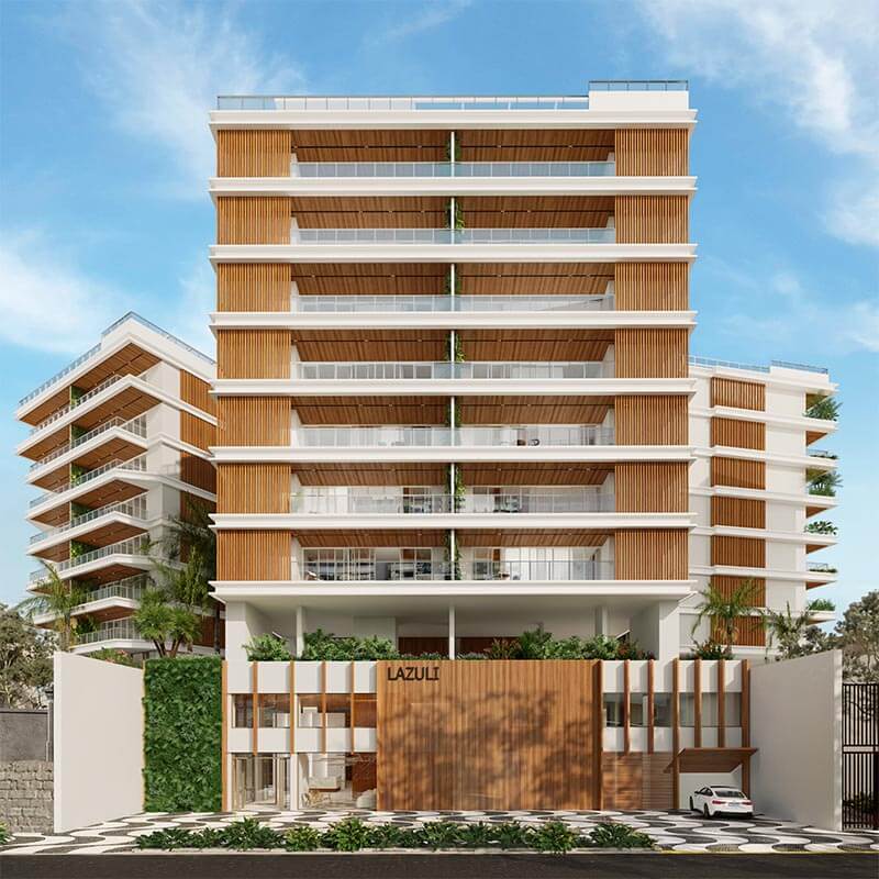 Com três edifícios de frente para o mar, Lazuli apresenta unidades de 4 e 3 quartos com até 178 m² e coberturas lineares com até 393 m² e 4 suítes