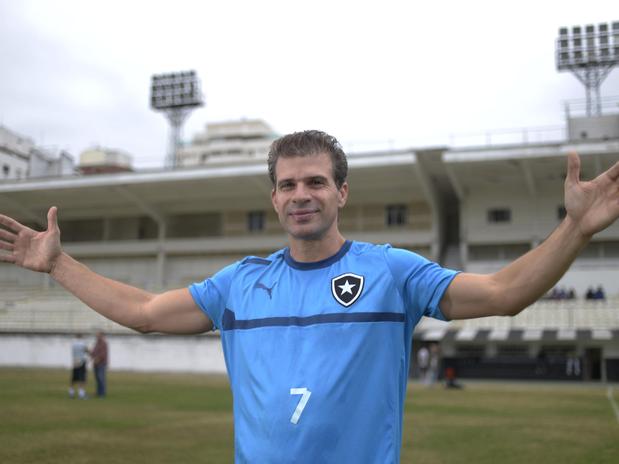 13 anos depois, Túlio Maravilha voltou a pisar no gramado do Caio Martins, em Niterói. O atacante, que acertou seu retorno ao Botafogo para buscar o milésimo gol na carreira, com a camisa alvinegra, foi recepcionado por cerca de 50 torcedores no estádio. Sempre extrovertido, o jogador, de 43 anos, apareceu em campo cercado pela imprensa. Bastante sorridente, ele não escondia a satisfação de estar de volta ao campo onde conquistou suas maiores glórias na carreira.